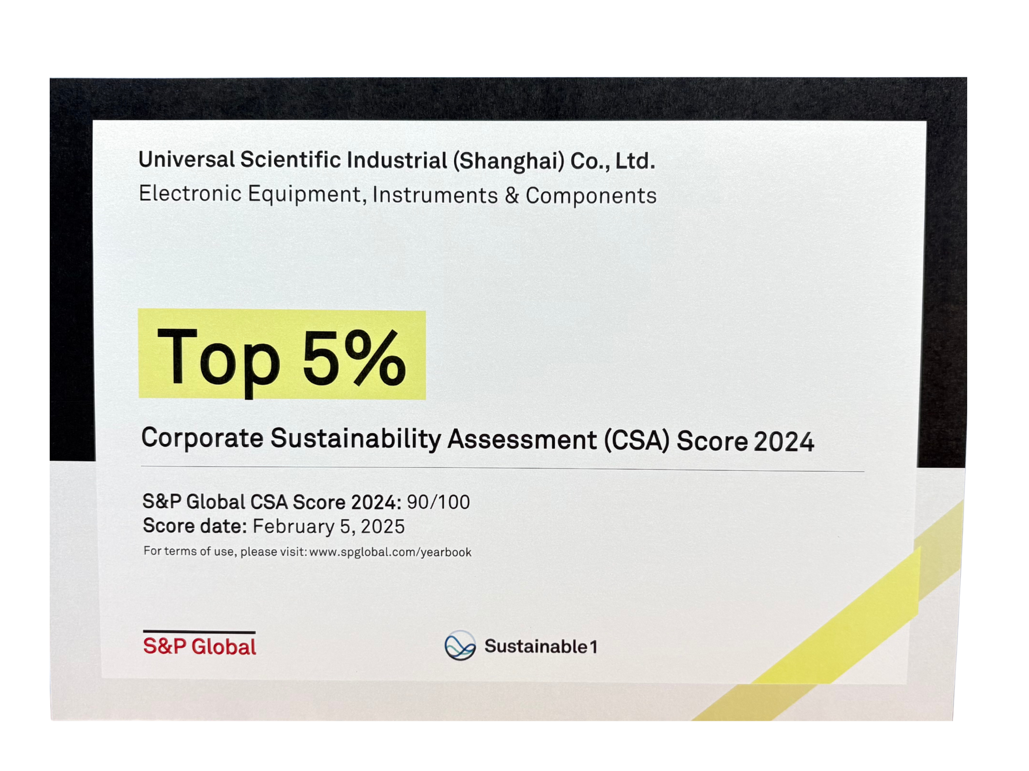 2025 标普全球可持续年鉴 ESG 评分前 5%