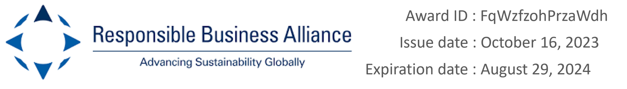 国际标准认证ISO 9001, ISO 14001, ISO 45001, RBA Certification -